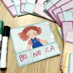 Recurso prático e visual ideal para crianças treinarem a escrita de palavras de forma leve e eficiente na alfabetização. Você recebe um PDF com 50 páginas prontas para imprimir, contendo fichas ilustradas que combinam imagens e espaços para que a criança possa escrever.