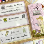 Um recurso lúdico, prático e pronto para imprimir que ajuda a criança a ler, pensar, completar frases e escrever palavras com apoio das imagens.