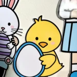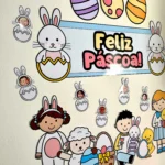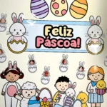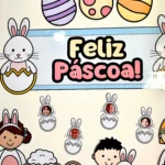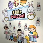 Transforme a Páscoa na sua sala de aula com um painel exclusivo, colorido e cheio de charme. Este kit inclui um painel ampliado de 1,3m, coelhinhos para colorir e personalizar com fotos ou desenhos, além de elementos extras para criar um cantinho temático encantador.