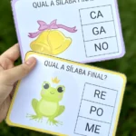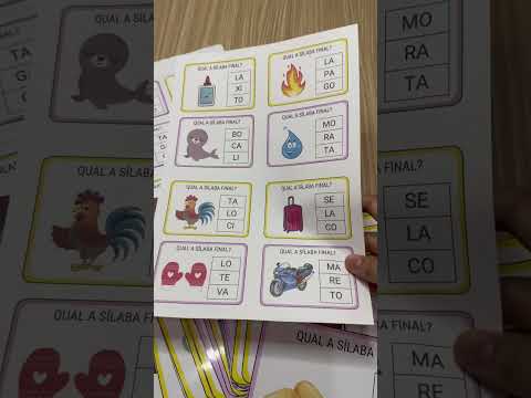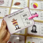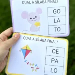 O Qual a Sílaba Final? É um material em PDF pronto para imprimir que ajuda professores a desenvolver a consciência silábica das crianças de forma simples e divertida. Ao observar as figuras, as crianças falam as palavras e identificam a sílaba final correta, facilitando a associação entre som e escrita.